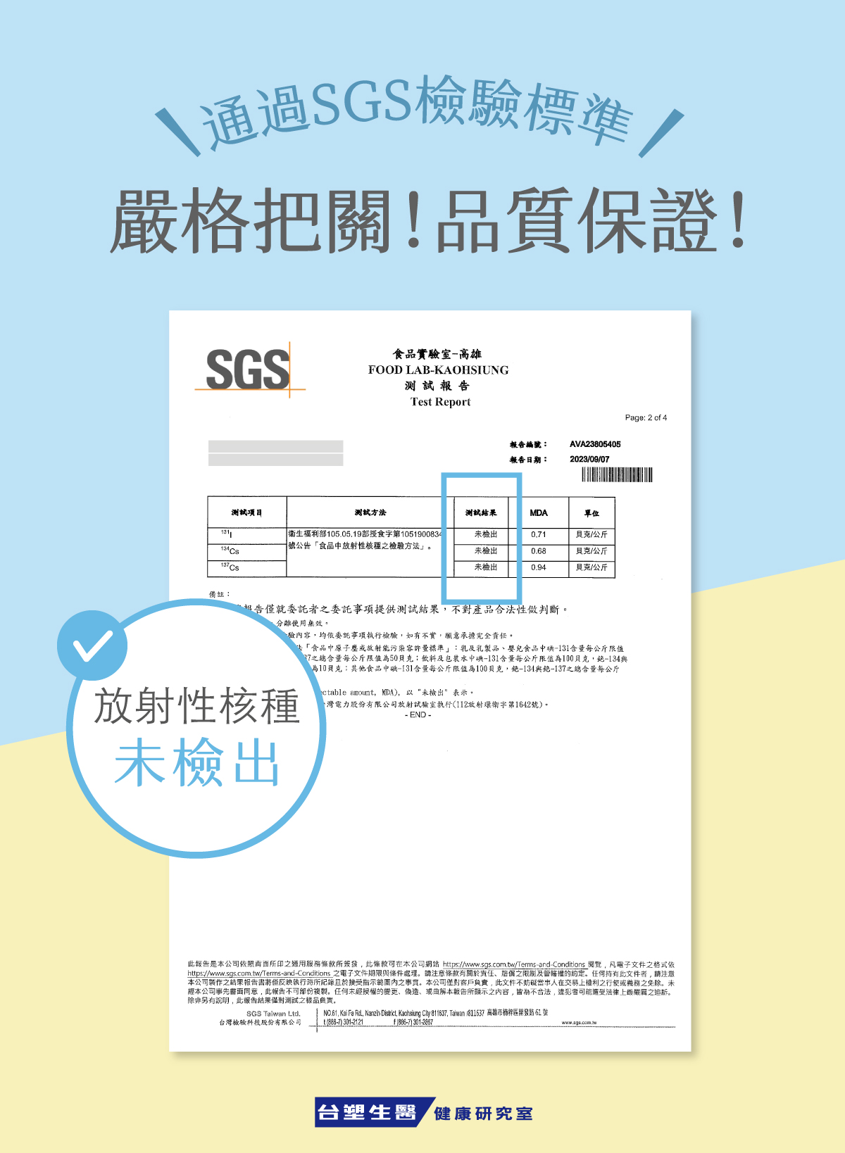 賀!台塑生醫肽股力成功通過SGS食品放射性核種檢驗報告!