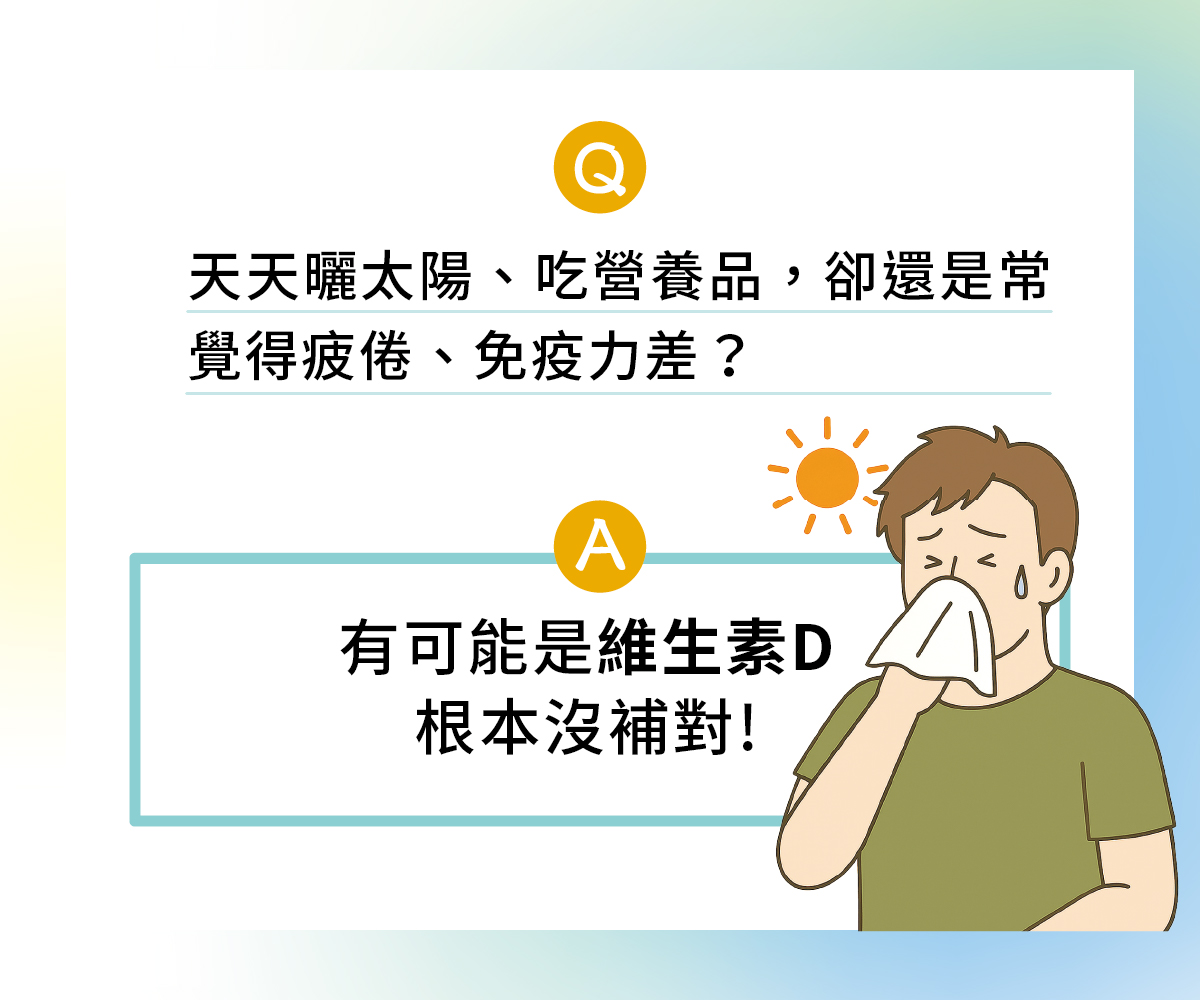 你天天曬太陽、吃營養品,卻還是常覺得疲倦、免疫力差?有可能是維生素D根本沒補對。